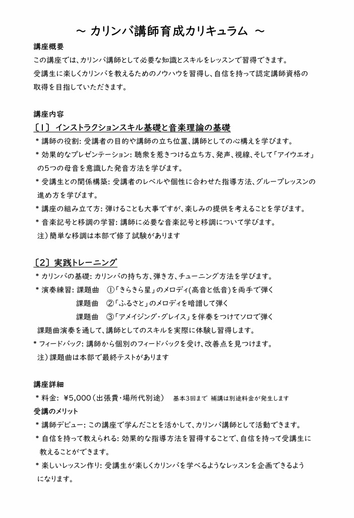 そこで、音符の読めない楽器演奏が苦手な方でも弾けるような初心者のための楽譜の必要性を感じ、カルチャースクールの音楽の専門家の力を借りながら、楽譜制作に取り掛かり「おてがるカリンバ教本」として2020年12月にアイリスチャームプランニングより出版。
